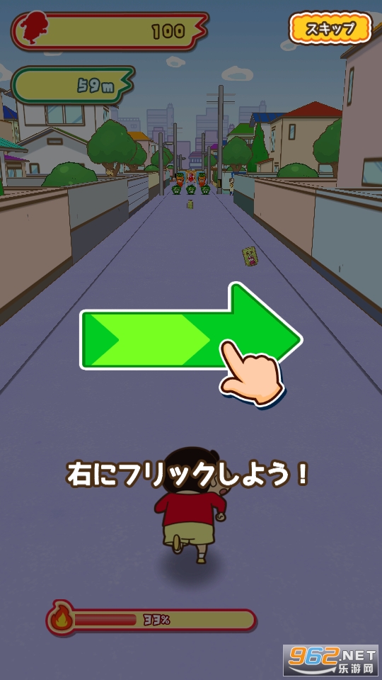 这是一场跑步游戏,其中在春日部市冲刺的Shin-chan上下,左右操作,以获取她喜欢的各种巧克力和巧克力,同时避免各种障碍。