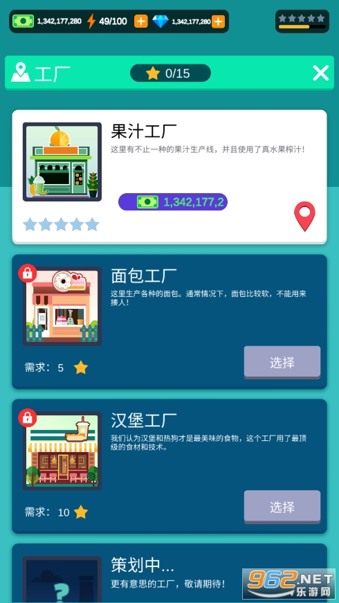 好玩的模拟游戏,画风看起来精美华丽,玩法内容丰富,里面拥有超多的设备让大家来升级,丰富的游戏内容可以解锁,在这里你可以管理工厂,利用策略,逐渐解锁升级果汁工厂,面包工厂,汉堡工厂等等!