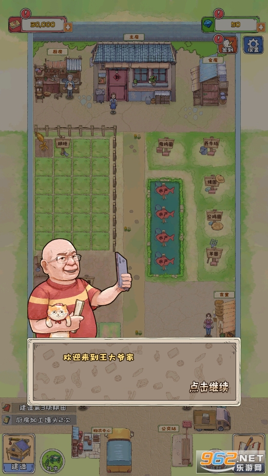 《王大爷的幸福生活破解版》是一款竖版卡通风休闲模拟游戏,游戏中玩家扮演退休的王大爷,在游戏里面种植玉米,小麦,南瓜,辣椒,西瓜等蔬菜水果,用手机的农作物加工馒头,画卷,油条,包子,葱油饼,苗条等等售卖,赚钱升级农田,房屋等建筑,养殖鱼塘,解锁更多的玩法,体验幸福的退休生活!