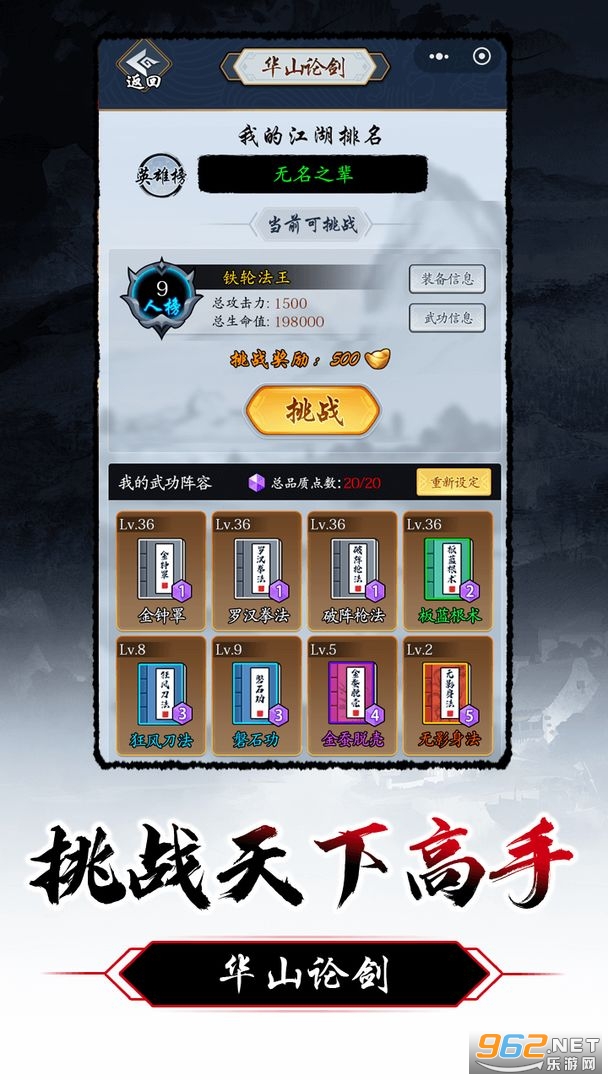 --共64种不同的武功,各自拥有独特的门派和职业属性。