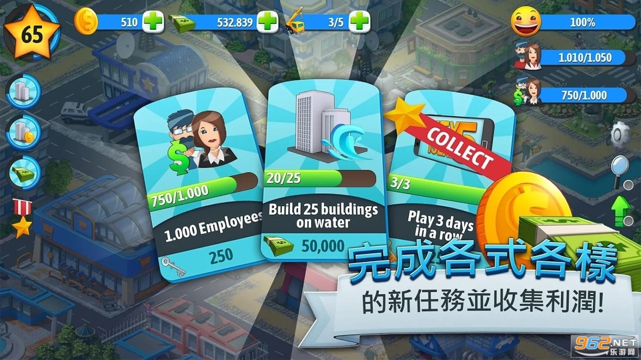 一款非常有趣的休闲模拟经营游戏,游戏中玩家将进行有趣的城市建设,游戏的操作简单容易上手,还有着多样的玩法和挑战等待着你,游戏的玩法轻松有趣,合理的摆放各种建筑的位置,推荐给喜欢休闲游戏的玩家。