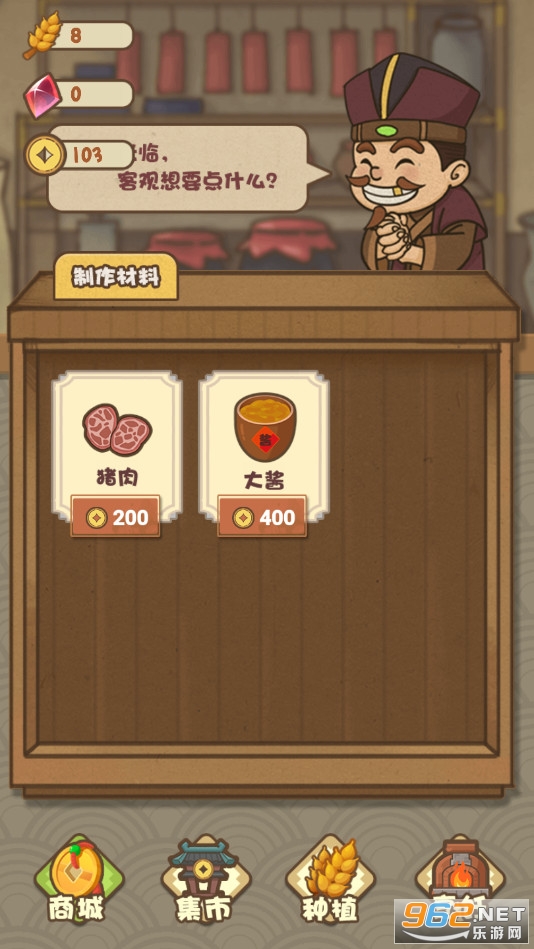 《武大郎卖烧饼游戏》是一款非常好玩的融合了包括经营以及制作种植等多种玩法的模拟休闲游戏,在游戏中玩家的主要任务就是根据顾客的要求制作让他们满意的烧饼进行售卖,并且不断的种植各种食材。喜欢的话就快来下载吧!
