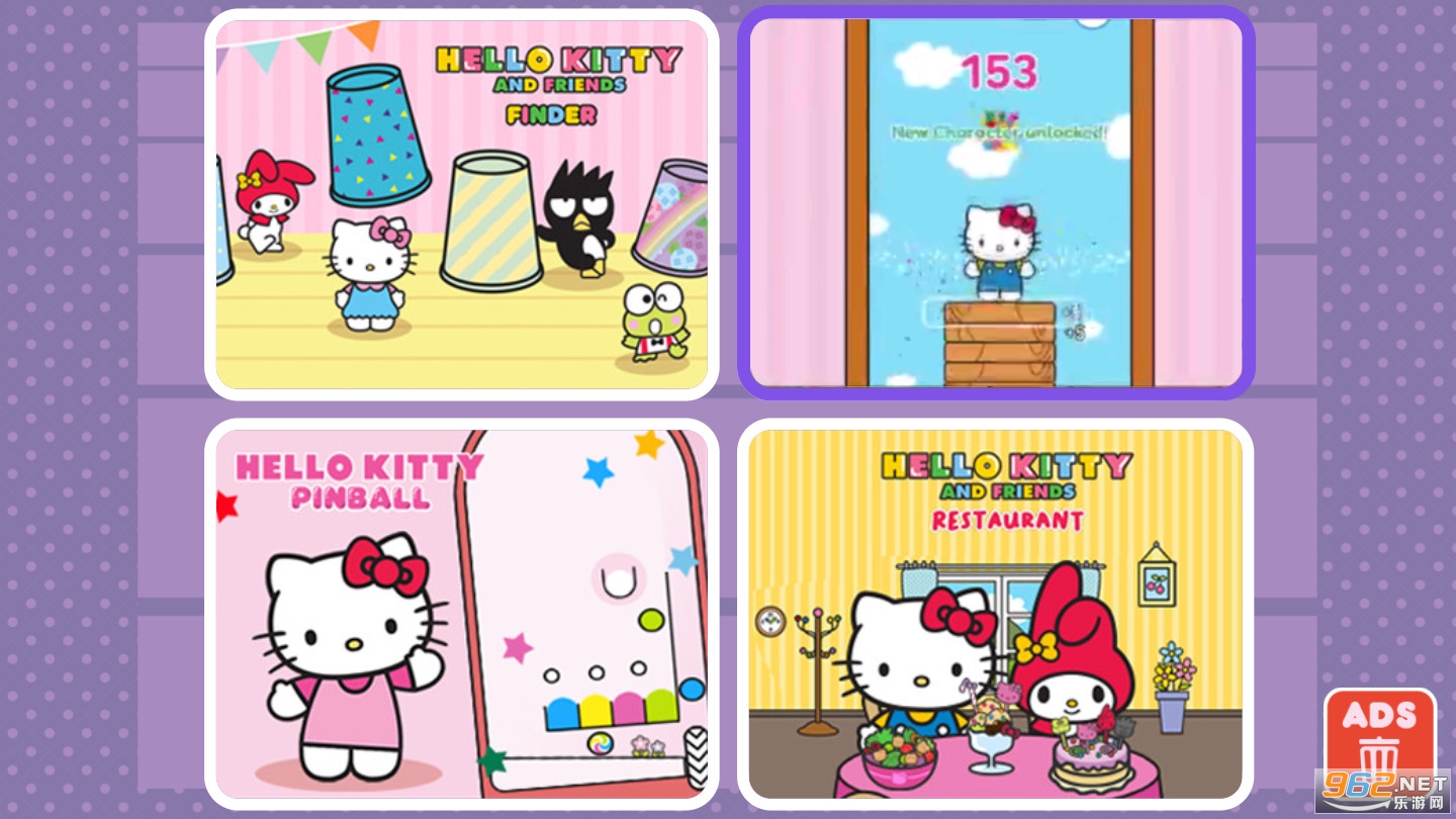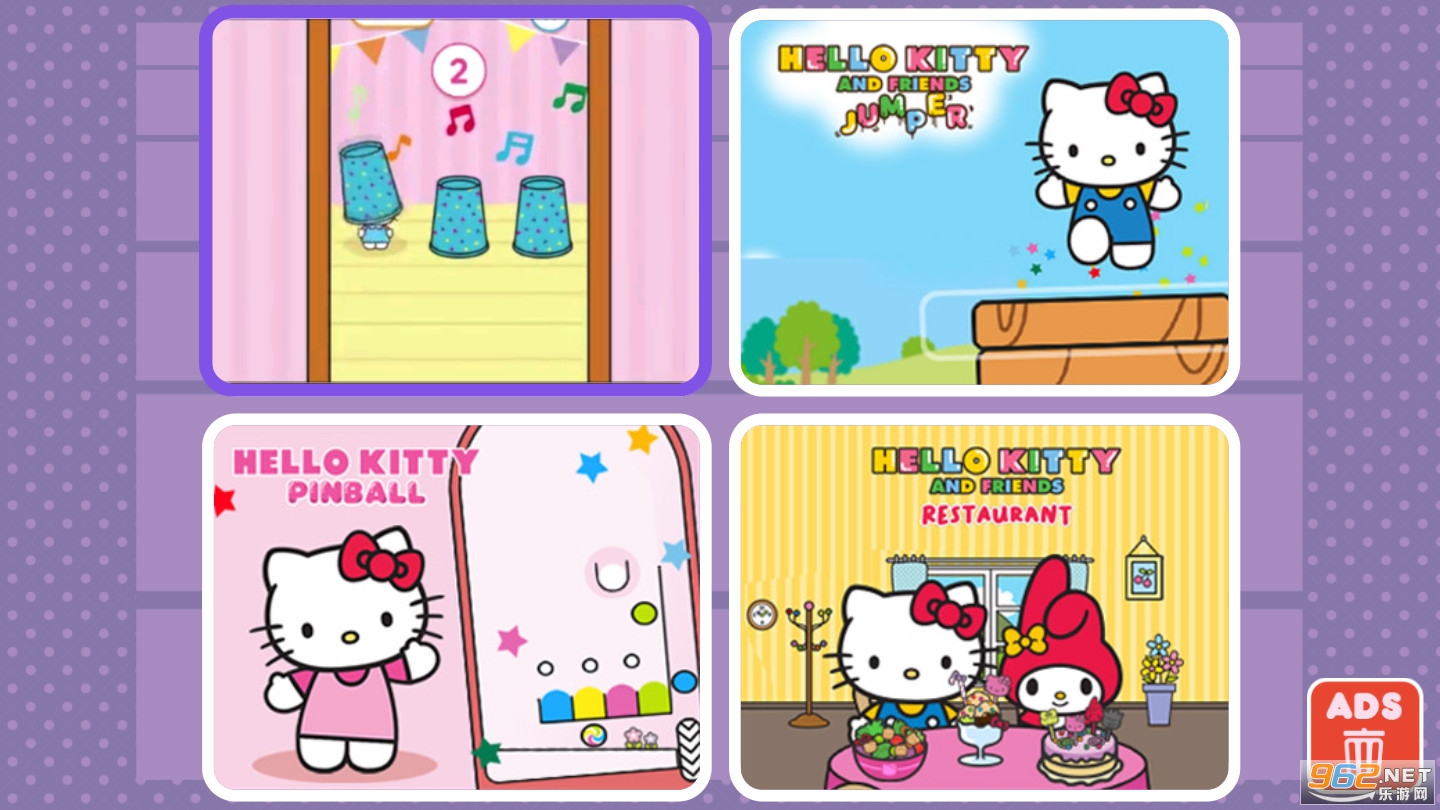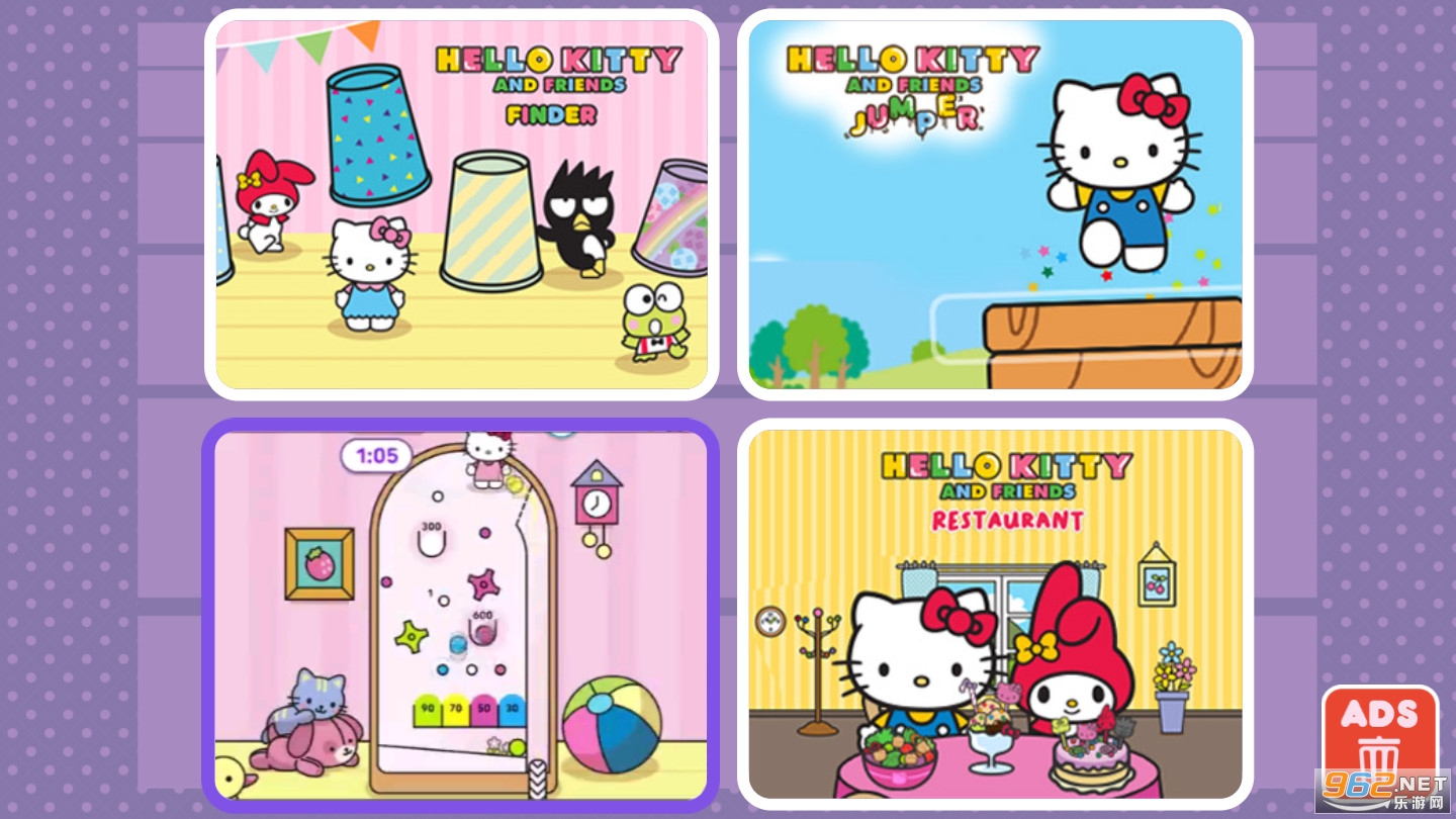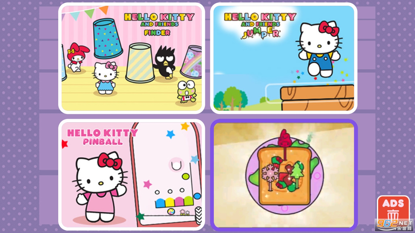 Hello Kitty Collection 是 4 款游戏合集。享受与由 Badtz-Maru、Keroppi 和 My Melody 主演的 Hello Kitty 和朋友们一起玩的乐趣。玩 4 款免费游戏:Hello Kitty Pinball、Hello Kitty and Friends Jumper、Hello Kitty and Friends Finder 和 Hello Kitty and Friends Restaurant 1 场游戏。