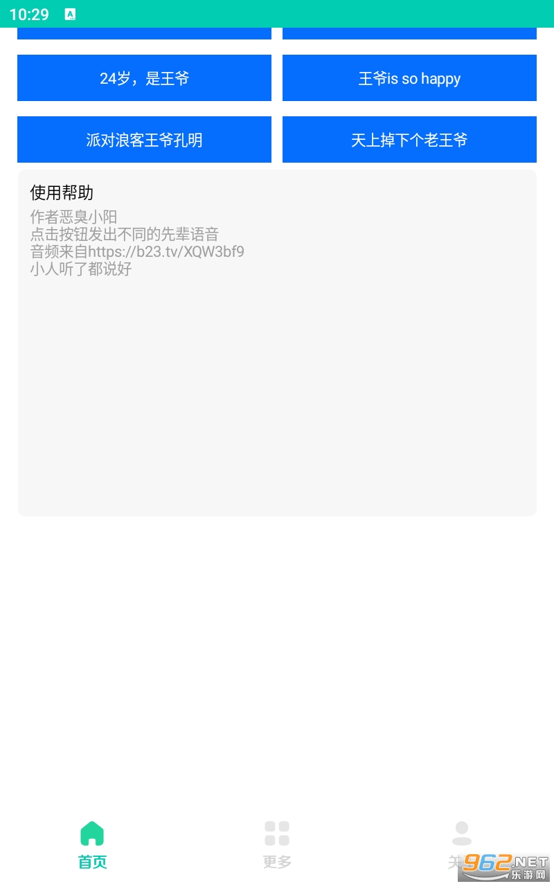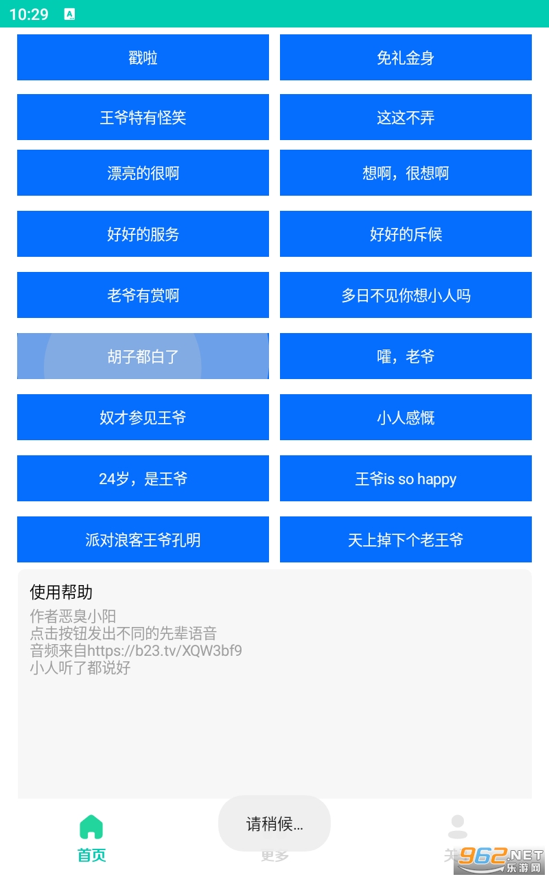 《王爷盒app》是一款用起来非常不错的语音盒子类软件,软件的功能性以及使用的方法还是很不错的,操作起来只需要点击对应的按钮即可出现搞笑的语音,感兴趣的亲们赶紧下载吧。