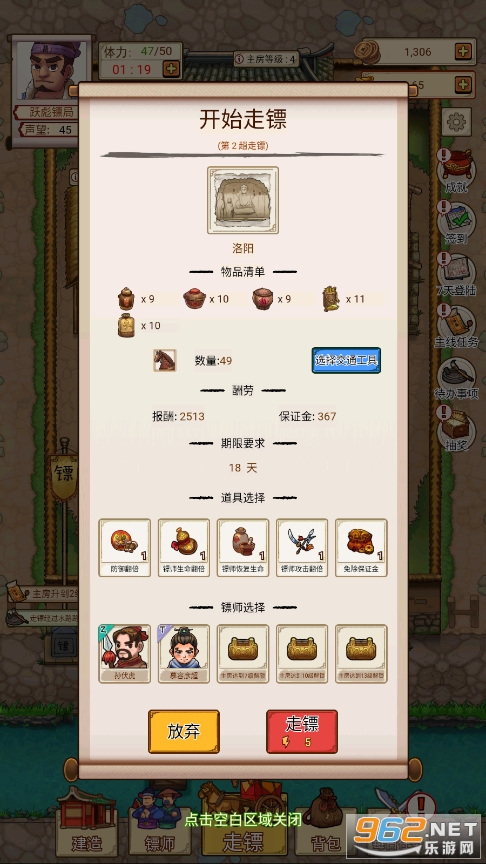 2、游戏中你能够使用不同的方法来将镖运到指定地点,完成任务获得奖励;