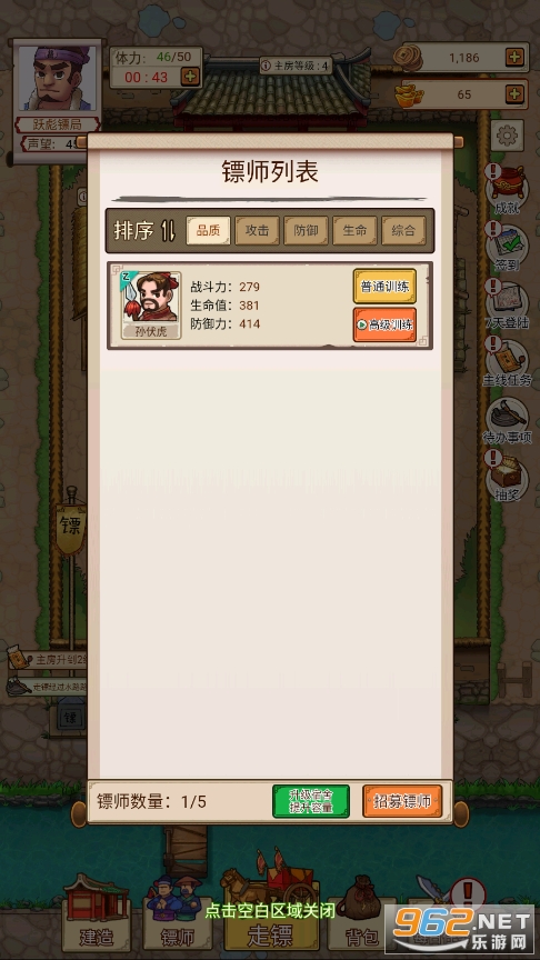 好玩的模拟游戏,以镖局为背景,玩家在这里可以招募镖师,完成押镖任务,升级镖局的设施,训练镖师,提升等级,在押镖的过程中解决各种随机事件,完成任务,赢得奖励!