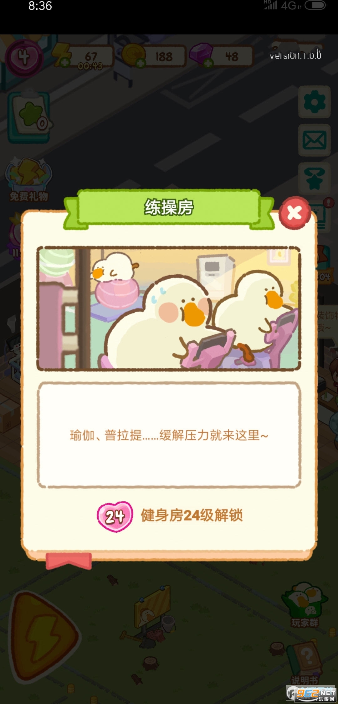 《肥鹅健身房破解版最新版》是一款非常有趣的模拟经营类的休闲游戏,体验各种健身项目,把你的健身房办理的越来越好。通过合理的营销手段让你的健身房能够获得更高的关注度,经营的越来越好,画面非常清新可爱哦。快来下载吧!
