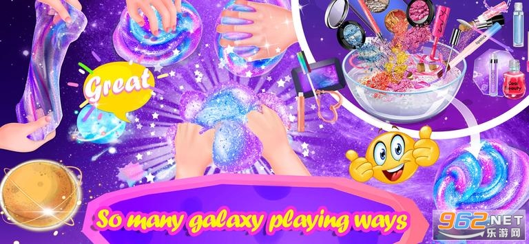 使用我们的最新应用,您可以使闪闪发光的银河化妆史莱姆。
