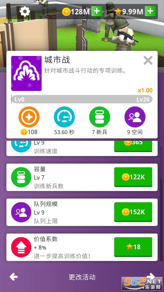 《和平训练营无限金币版》是一款模拟经营类的休闲游戏,玩家在游戏中需要打造一个合格的军队训练营,建立各种不同的设施,并且不断的提升设施容纳人的个数问题等。喜欢的话就快来下载吧!
