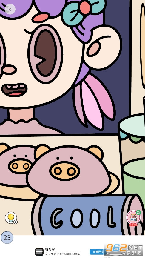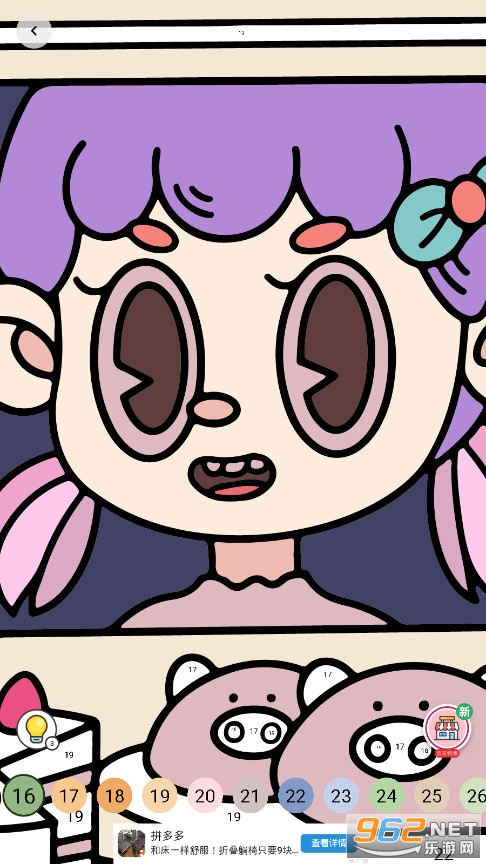 《数字填色Paint.ly》是一款跟《秘密花园》玩法差不多的填色解压小游戏,游戏里面有很多的模板,人物,花草,动物等等,模板多种多样,玩法也很简单,只需要你将对应的颜色按照数字填充到对应的地方就可以了,玩起来很轻松解压。