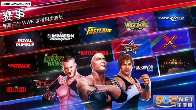 打造自己的WWE超级巨星名册,与其他冠军加入双打对决吧。游玩与真实WWE直播同步的动作赛事,例如Monday Night RAW,SmackDown Live,Clash of Champions PPV以及每月赛事。