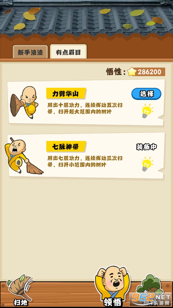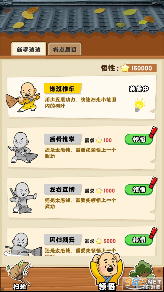 趣味的扫地游戏,玩家可以拖动扫地僧去清扫地上的大量树叶,可以学习各种各样的技能来更快的进行清扫,小编带来的是扫地的十八般武艺破解版,有着大悟性大量树叶等,喜欢的朋友可以下载试试。