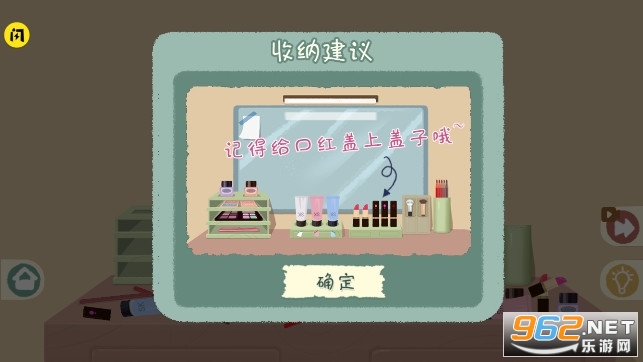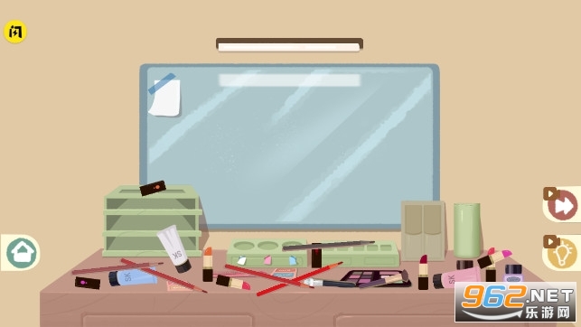 2、镜中相思:除了要按照答案的提示将化妆品排列好以外,还要记得给口红盖上盖子哦。