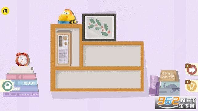 1、悠然一角:按照下图的位置将书架收纳完毕即可通关。