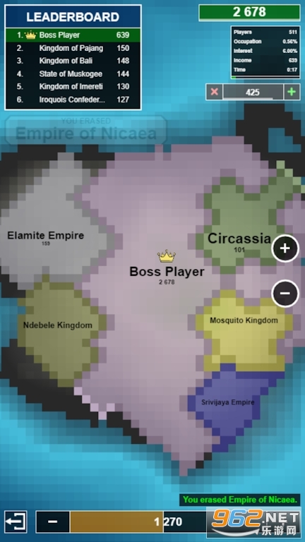 一款轻松有趣的领土战争策略游戏,在这款游戏中一开始你需要快速扩张来抢占无人的土地,然后谨慎的投入兵力来进行作战,游戏中你还可以简单的进行外交,推荐给喜欢策略io游戏的玩家。