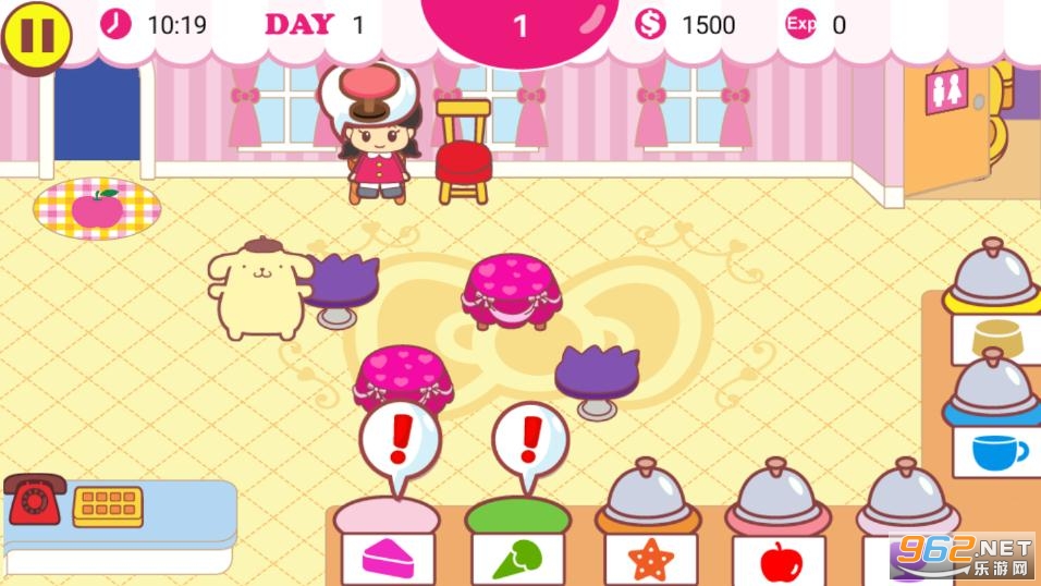 一款以Hello Kitty为主题的模拟经营游戏。快来加入Kitty团队吧。她在《Hello Kitty咖啡厅》做起了咖啡生意呢。聘请你最喜欢的Sanrio人物来帮忙,每天与Kitty一起经营咖啡生意。将你的咖啡店装扮成史上最可爱、最舒适和最幸福的场所。在物品店中,你可以选用一个以漂亮Kitty为主题的家私装饰场景,随意装点您的咖啡店,只要你喜欢。还可以重新摆放里面的设施,如桌椅等,以满足市场日益增长的需求。学习新的美食谱,提升咖啡厅的级别。这是一个测试速度与经营谋略的游戏。面临的挑战是:您要非常快速地提供食物给每一位客人,要讲求工作效率,不能让客人们不满意而生气地走了。如果你的咖啡店始终能提供优良的食品和一流的服务,那就会有一位神秘嘉宾来光临。