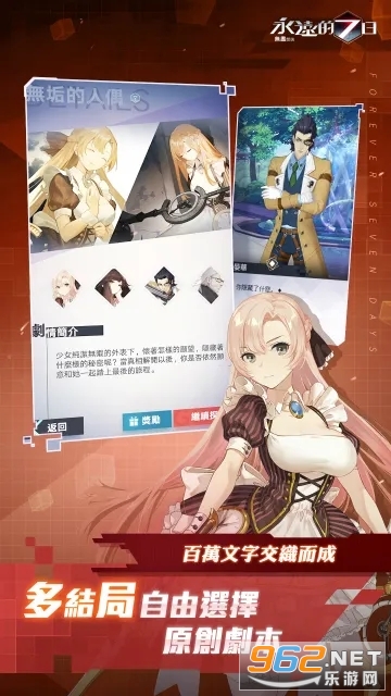 基本上就是七日之都的玩法,将横屏改为竖屏更好进行操作,同时还加入了放置玩法。玩家将在七天的轮回中找到正确的道路,选择不同的剧情,还有着超多的神器使等你收集,推荐给喜欢剧情游戏的玩家。