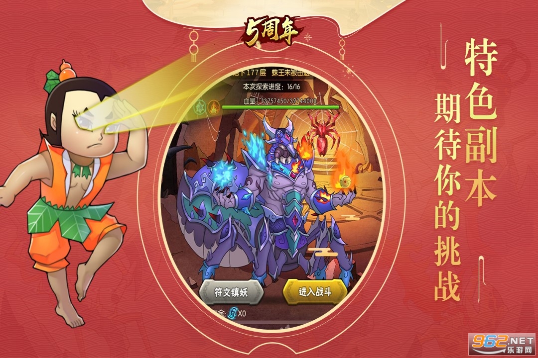 葫芦娃动画是很多朋友的回忆,本款游戏以葫芦娃为题材,加入了众多的葫芦娃与妖精,玩家可以组建自己的队伍去探索各个副本,打败蛇精,喜欢的朋友可以下载试试。