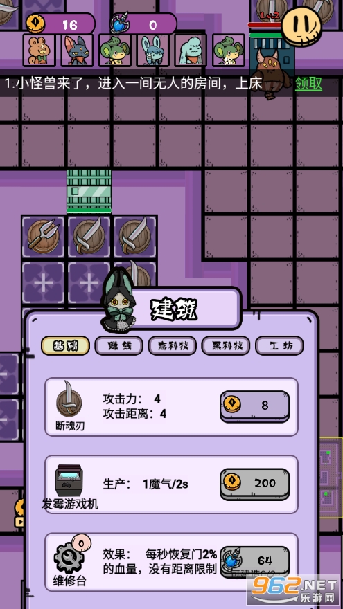 3、你可以放置不同等级的炮塔来完成防御,面对鬼怪的攻击你可以加强你自己的火力。