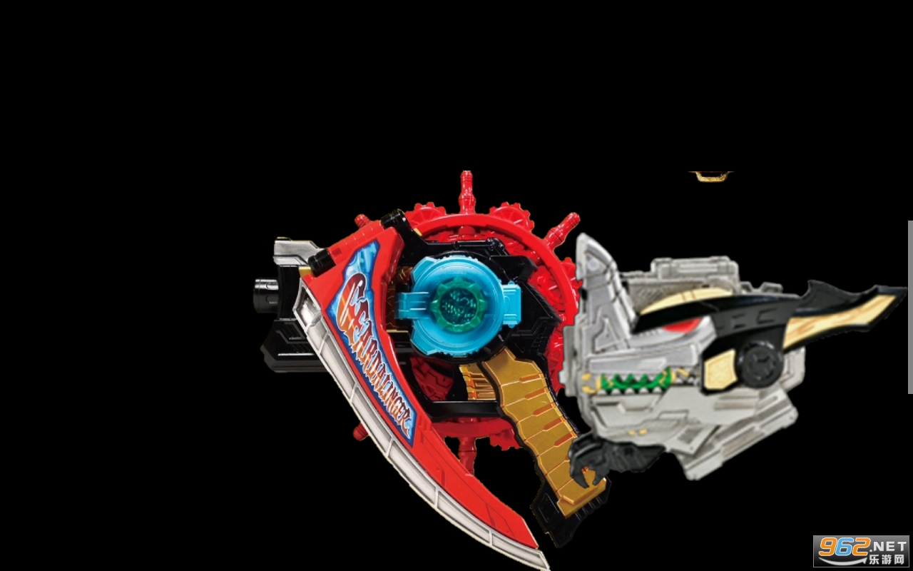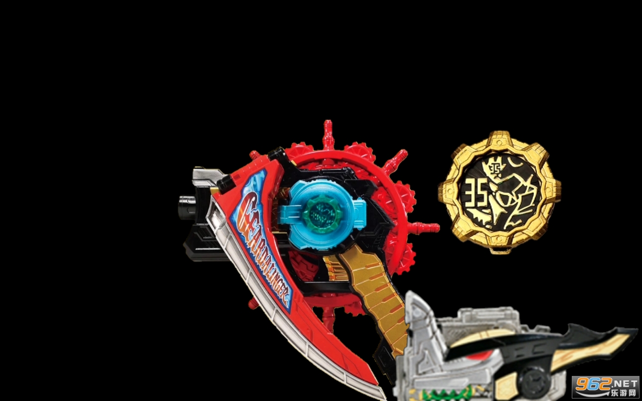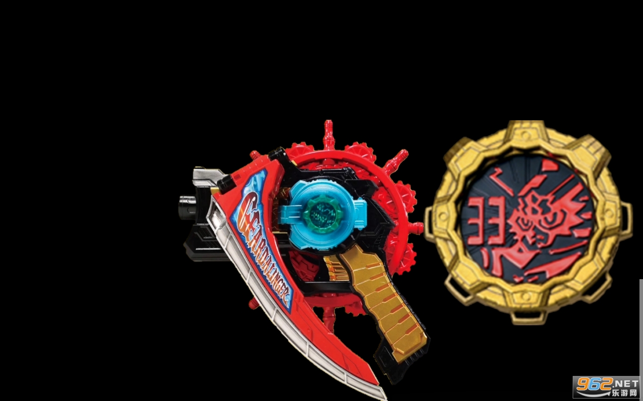 其变身使用的是类似假面骑士OOO恐龙斧的武器和变身器一提的玩意,不过正面看着就是海贼船的船舵轮盘,整个皮套完全就是海贼战队豪快者的风格,就是稍微加了一点盔甲,头盔样式看着更像是海贼的船长,这玩意叫豪快金也没啥违和感,庆幸一下不是马贝勒斯变身的。