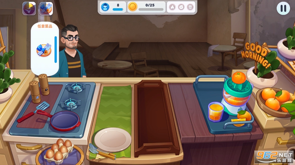 《烹饪现场中文版》是一款画面清新的将烹饪玩法与装修玩法相结合的趣味休闲手游,游戏中玩家将开设一家早餐店,可以为来往的顾客提供各种美食,注意每个顾客的菜单可能不同,合理的制作早餐,通关后会获得星星,通过消耗星星可以来装扮自己的房屋。