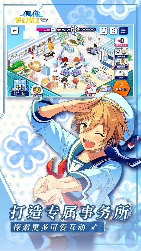 如果大家想给自己喜欢的小偶像做衣服布置房间,就要常打开事务所了。事务所级别2后,各项功能才会开放。