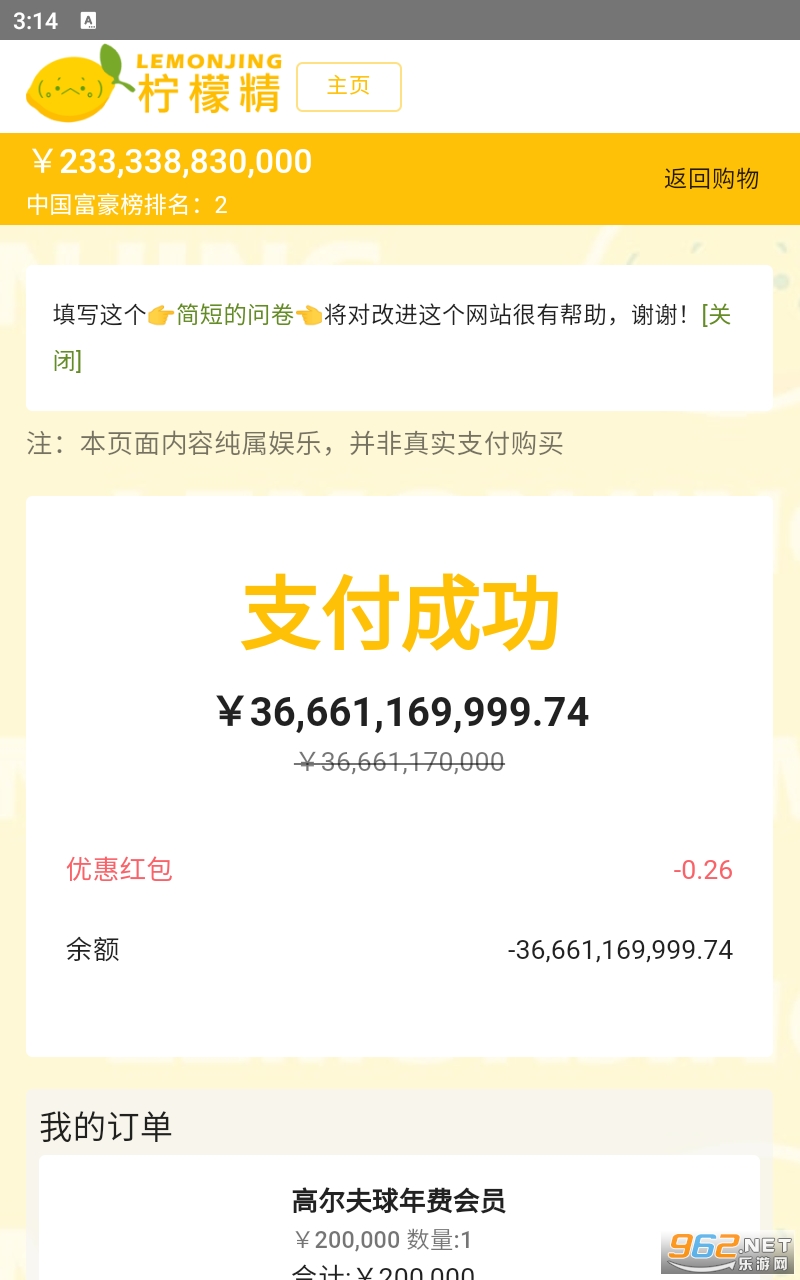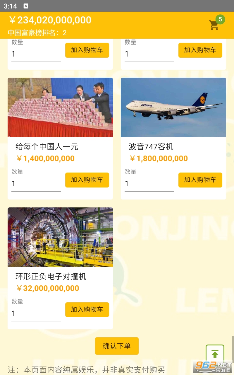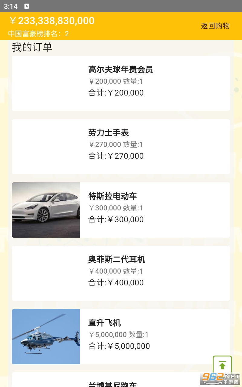 验成为首富疯狂买买买的解压游戏,在游戏中没有任何的限制,你需要做的就只有一个,那就是花光所有的钱!