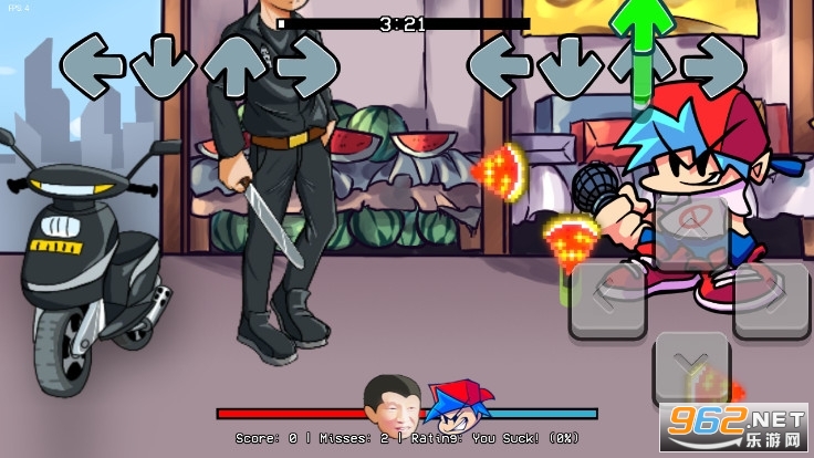 超级好玩的一款音乐累节奏闯关游戏,融入了许多b站爆火的网络梗元素在里面,我们将以主角bf的身份参与到买瓜大战中,将对手刘华强成功买到,并最终成功的购买到可口的西瓜美食。