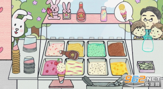 甜蜜爽口的冰淇淋最棒了!将各种口味的冰淇淋堆成球,按自己的喜好,做出各式各样的冰淇淋。放上草莓、糖果和巧克力酱等多种配料,制作甜蜜爽口的专属冰淇淋吧。