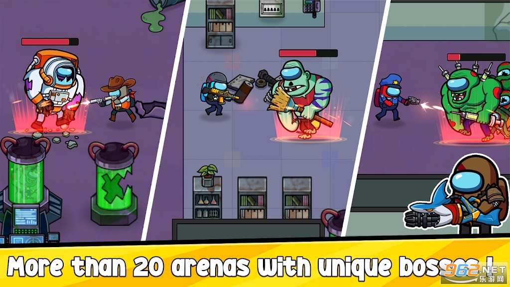 《冒名顶替者与僵尸破解版》是一款卡通风格的打僵尸游戏,在这款游戏中你将化身为冒名顶替者中可爱的船员对僵尸进行攻击,游戏的操作简单容易上手,和你的队友一起组队来击杀源源不断的僵尸,解锁更多的武器,赶快下载体验吧!