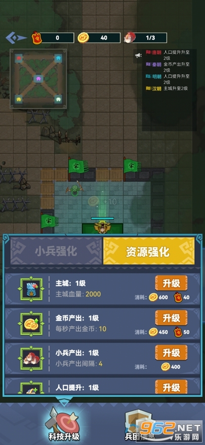 趣味的塔防游戏,玩家可以选择一个朝代去冒险,可以发展升级自己的城池,升级士兵属性,派遣士兵去攻占其他的城池,游戏已修改免广告,轻松体验。