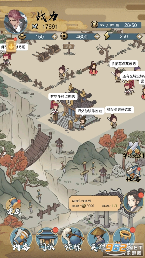 《江湖小侠》是一款全新的武侠题材角色扮演游戏,里面拥有内务,门派,修炼,英雄,招募,建造等丰富的玩法系统,玩家扮演的角色将白手起家,在这里开坑荒地,建造各种各样的建筑,发展门派,研习武学,迎接其他门派的挑战,修炼升级,打造江湖第一大门派!