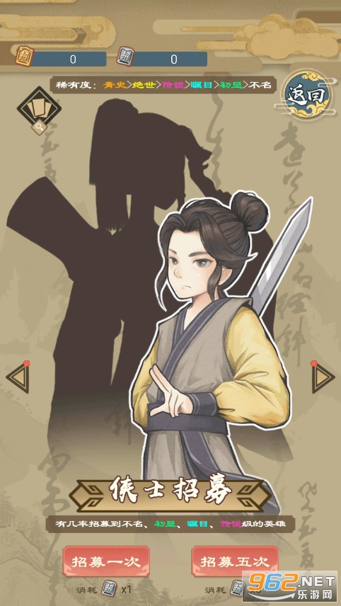 化身江湖小白,在各门各派之间穿梭,修炼着不同的武学与套路,同时也与江湖大侠,隐世高手请教失传的武学奥义,在江湖中行走的你,名誉的高低将决定了未来是否能成为一代大侠.