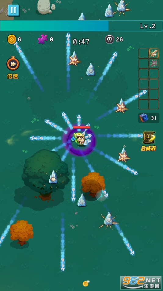 《勇者揍恶龙》是一款类似吸血鬼幸存者的生存割草类游戏,在这款游戏中玩家将控制自己的角色在源源不断的怪物中生存下去,游戏的操作简单容易上手,还有着丰富有趣的挑战等待着你,搭配各种技能,战胜怪物。