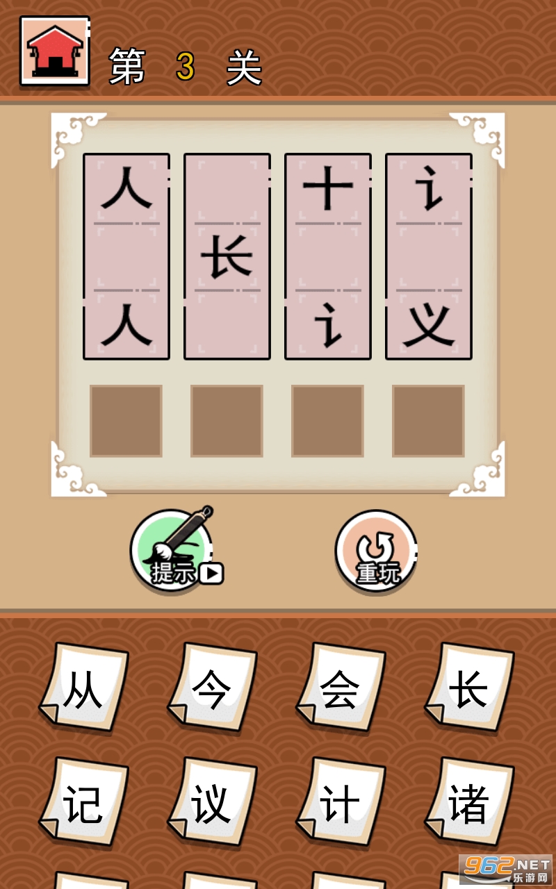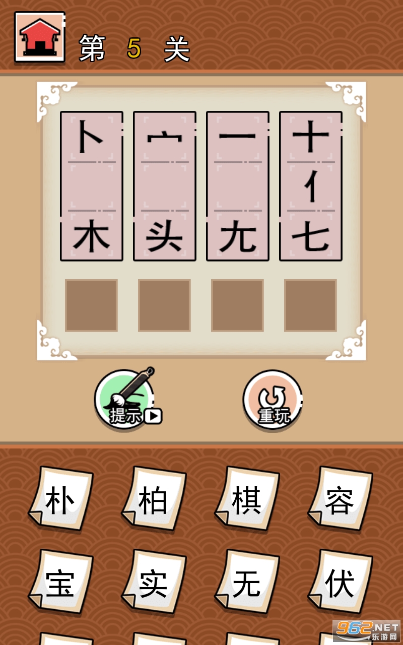 汉字拆拆拆是一款寓教于乐的休闲益智的游戏。玩家可以根据提供的部首及笔画,选出对应的汉字填入框中。边记汉字,边学成语哦!