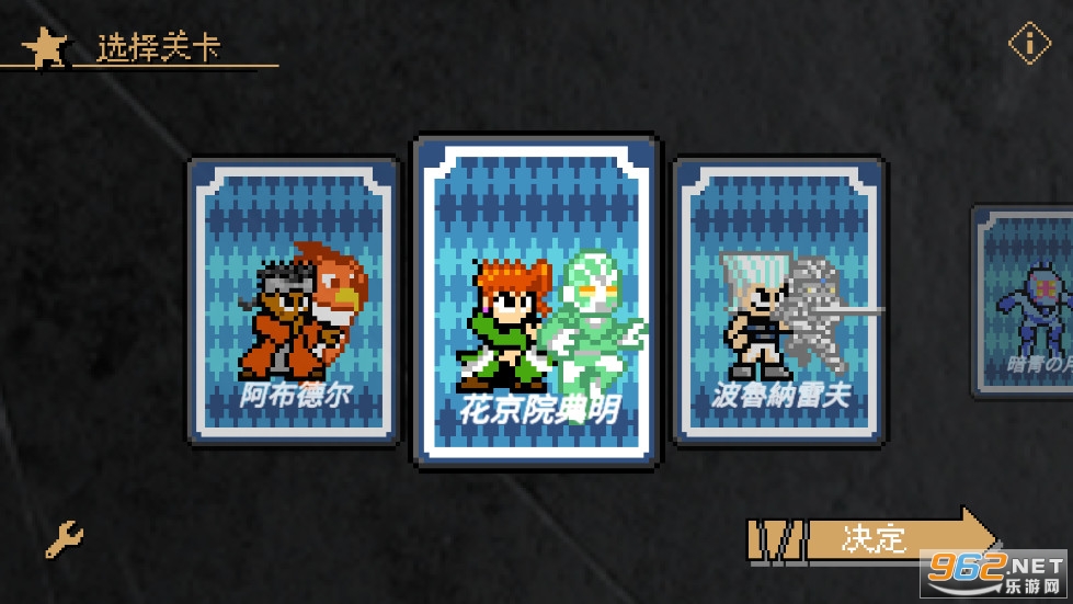 《jojoX洛克人》是B站up孟队推出的一款采用像素风格的2D横版动作手游,将jojo的奇妙冒险和洛克人元素相结合,加入了众多的像素角色,玩家可以选择喜欢的角色去战斗,游戏已修改,全角色解锁,可以免费体验,而且关卡也解锁,可以任意的挑战。
