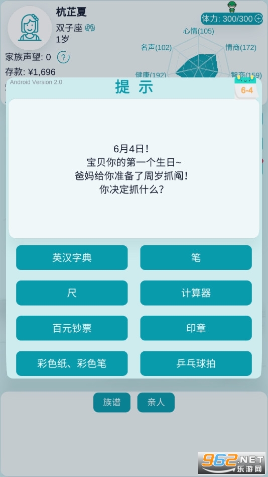 一款有趣的人生模拟游戏,在这款游戏中你将随机获得各种天赋,同时你的父母和兄弟姐妹也是未知的,你可以选择不同的工作来作为自己的事业,达到不同的条件可以解锁不同的剧情和事件,推荐给喜欢模拟游戏的玩家。