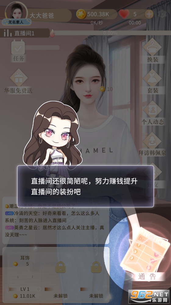 1、体验不同的主播养成玩法,进行各种互动。