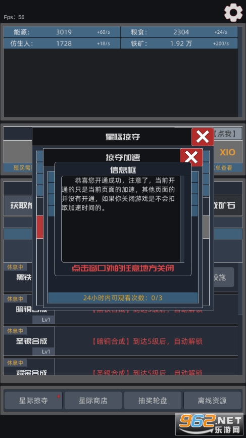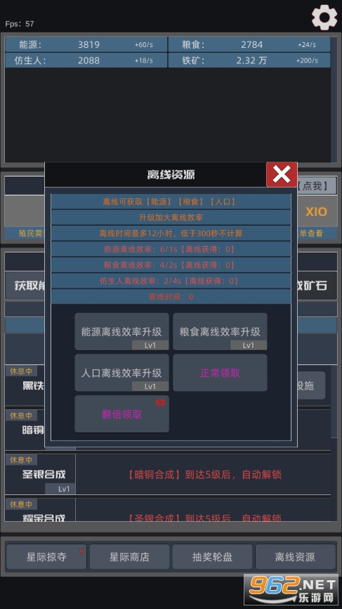 2.避免玩家忘记领取离线资源,现在启动游戏后如果有离线资源,那么就必须领取后才能进入游戏