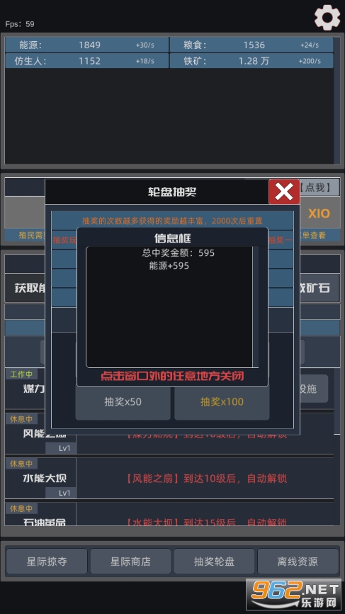 全新的文字类放置小游戏,里面有各种各样的星系,玩家需要通过不断地获取能源,粮食,人口等资源来发展一个个的星系,创造属于你的星辰大海!