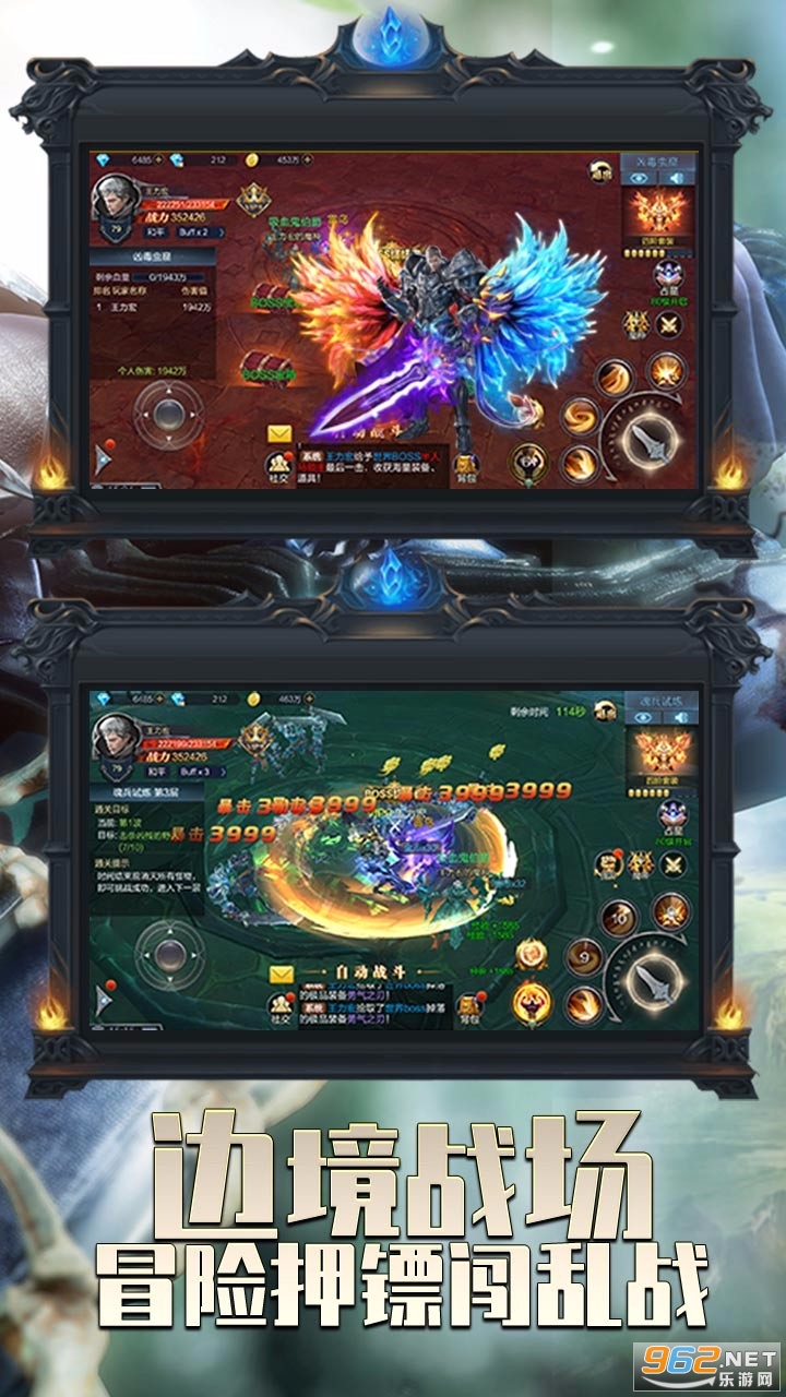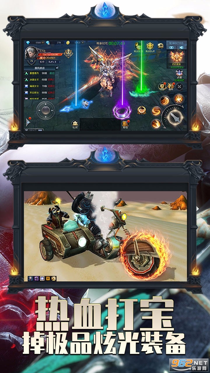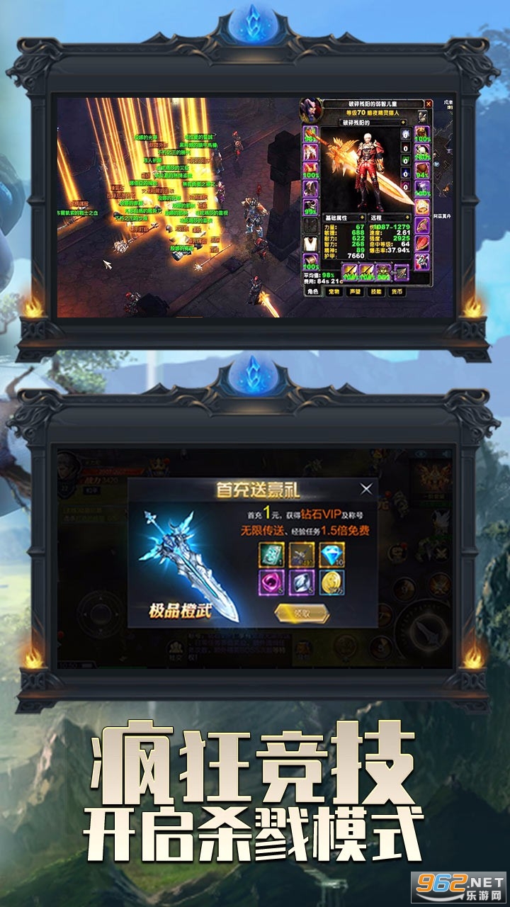 1、传说史诗装备超强战力,特色宠物彰显风姿。经典战场,华丽技能,热血战斗,世界boss,