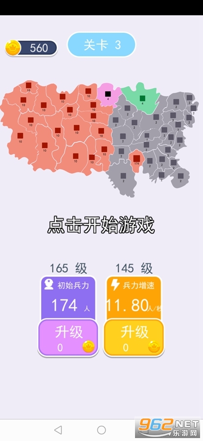 趣味的抢地盘游戏,游戏中玩家可以升级属性来获得更多的兵力,出兵速度更快,可以快速的去占领一些地盘,然后派遣大部队去占领其他强力的领地,喜欢的朋友可以下载试试。