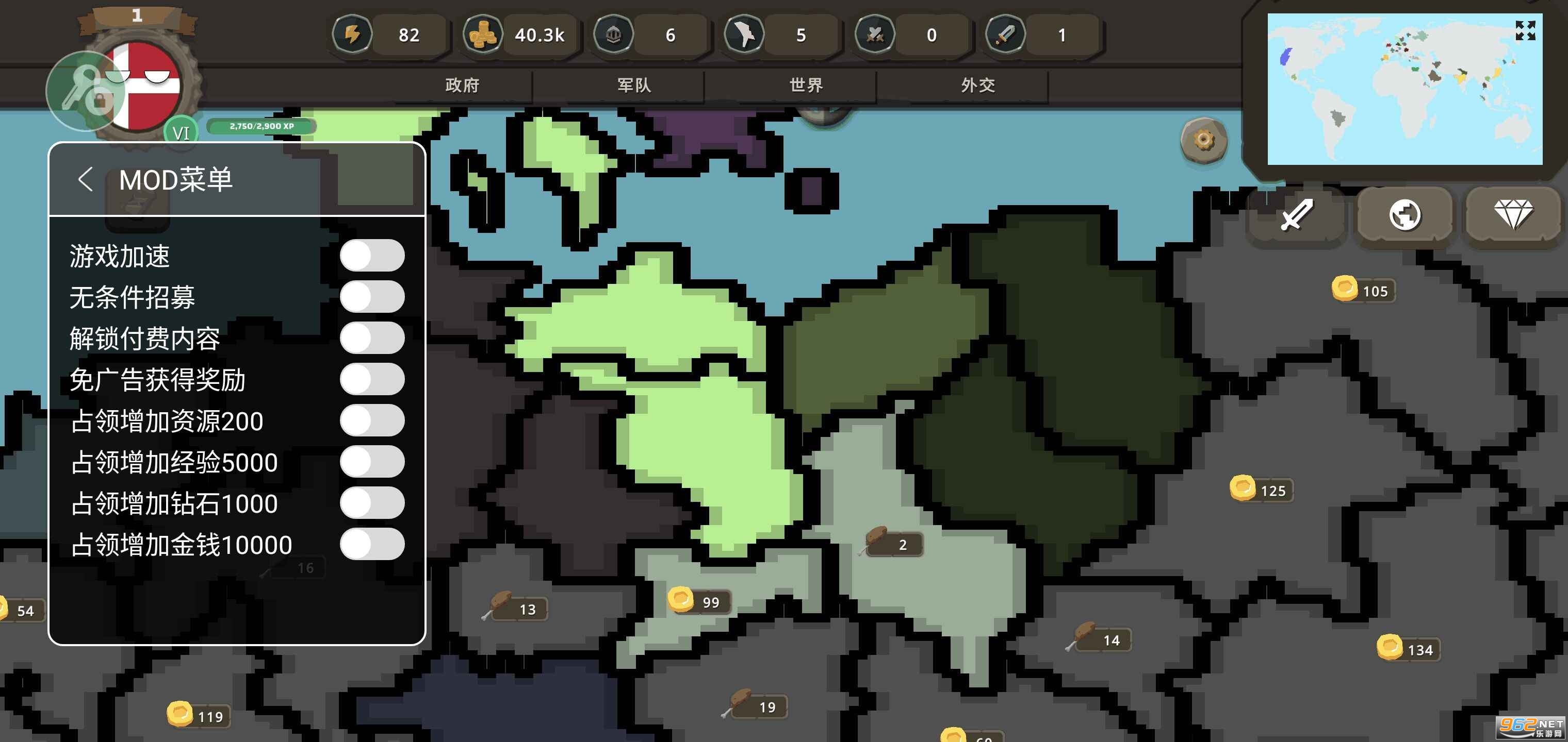 4、玩家需要建立强大的部队,在游戏中控制税率,提升国家的人民幸福,还需要升级国家的等级。
