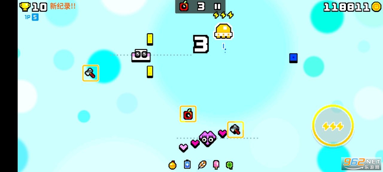飞行、冲刺、闪躲,捡取锤子,击碎方块怪物!