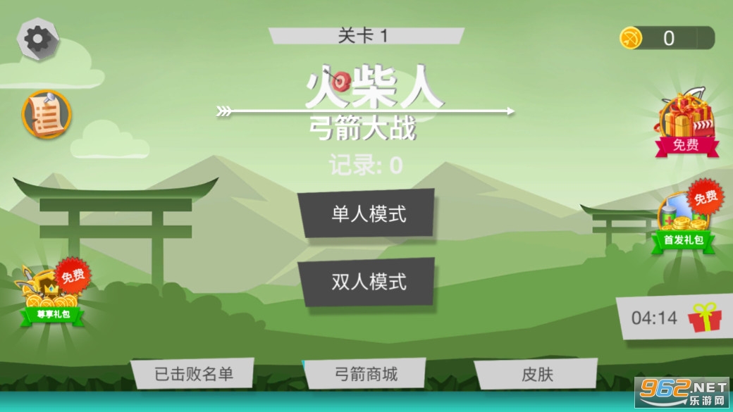 《火柴人弓箭大战游戏》是一款画面简约的射击闯关手游,游戏有着单人模式和双人模式两种玩法,玩家需要控制一个火柴人弓箭手去冒险,点击滑动屏幕可以控制弓箭射击的角度和力度,在合适的时候松开屏幕可以发射箭矢去攻击敌人,消灭全部的敌人即可过关。