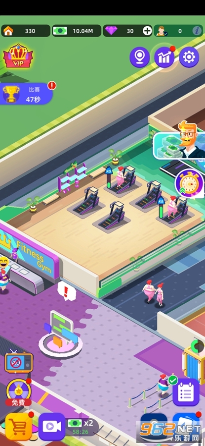 《健身俱乐部大亨》是一款画面清新卡通的模拟经营手游,游戏中玩家将拥有一家健身俱乐部,可以解锁跑步机等各种健身器材来让来往的顾客使用,赚取金钱,然后升级自己的健身器材,扩建健身俱乐部,赚更多的钱,成为健身俱乐部大亨。