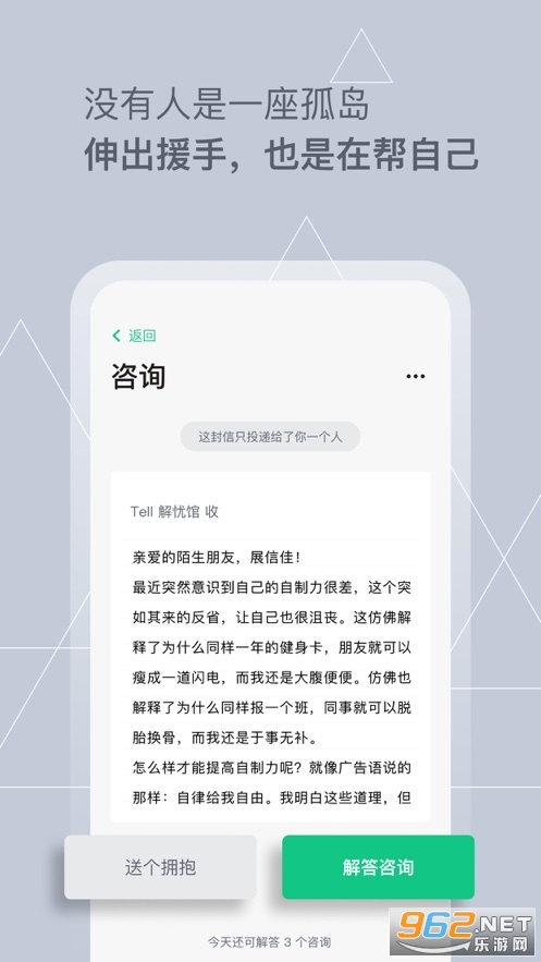 《tell最新版》是一款非常不错的用来发泄烦恼的软件,在这里通过匿名的方式发布你的烦恼,和更多的其他用户们产生共鸣,可以帮助你舒缓内心的烦闷哦,操作方式简单,而且功能十分的齐全十分的丰富,感兴趣的亲们赶紧下载吧。