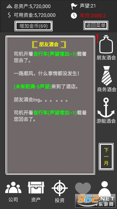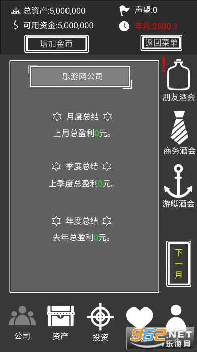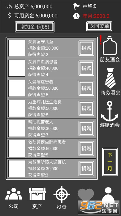 《赚它一个亿》游戏中你的身份是某地产大佬的儿子,在毕业之际你的父亲将手下的一间公司交给你打理,并给予你五百万,限期30年内赚到30e,如果能够做到,就可以顺利继承董事职位、