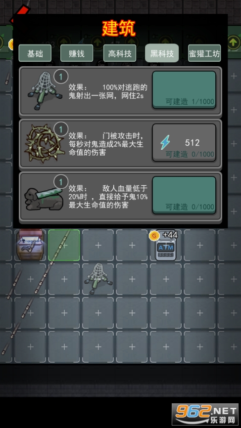 2、然后可以修武器攻击鬼,还有各种辅助道具,当然也不能忽视床铺,这是最重要的金钱来源;