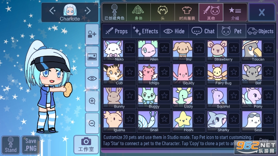 自定义数百个宠物和物品,您也可以让自己创建不同的角色。